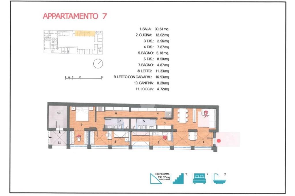 L’appartamento, che sarà consegnato completamente ristrutturato, si compone di: