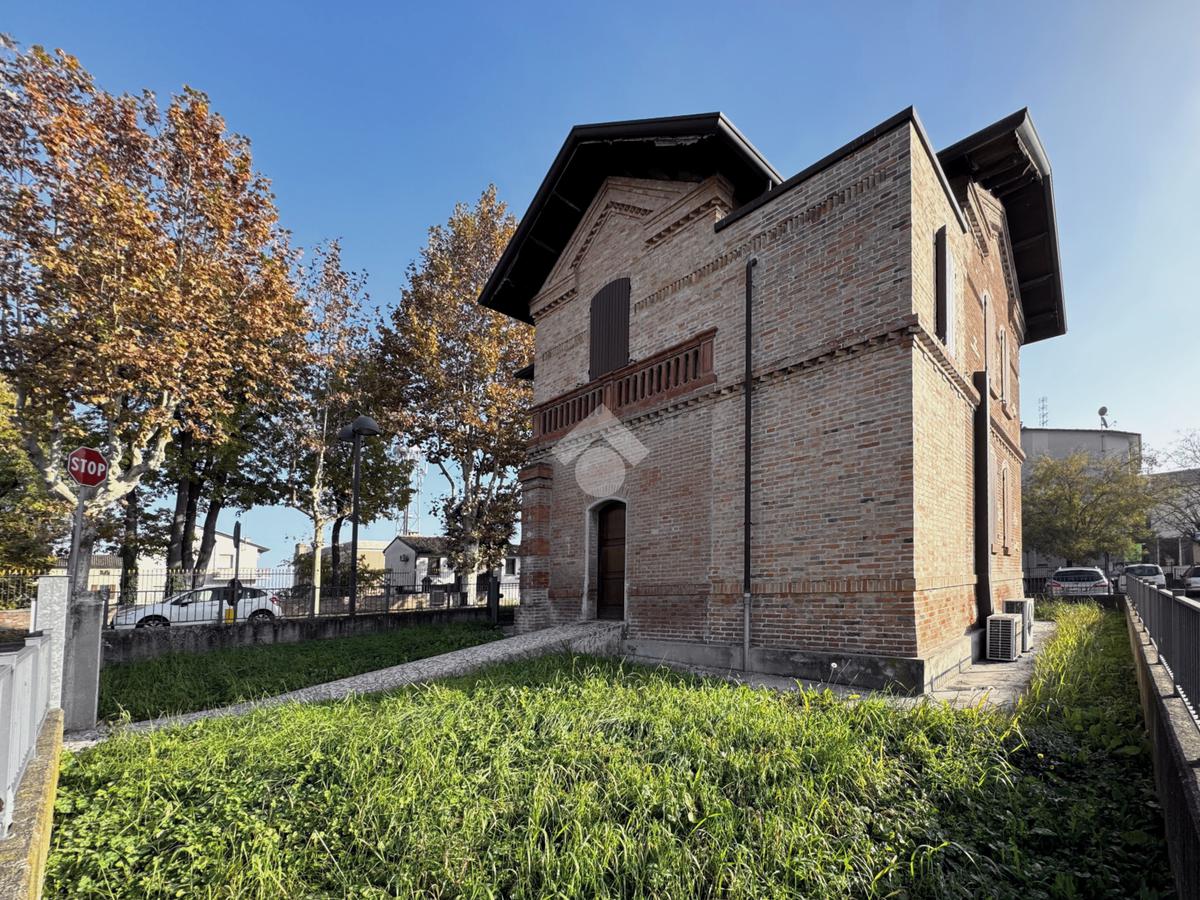 Situato in una zona centrale, questo affascinante fabbricato in stile Liberty si presenta come un'opportunità unica per chi cerca spazio, eleganza e posizione strategica. L'intero immobile, con un delizioso giardino, è composto da due uffici distinti, uno al piano terra e uno al piano primo, oltre a cantine al piano interrato.